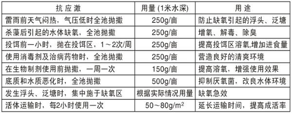 育苗池、高位池、高密度集约化工厂养殖,可加大使用分量。