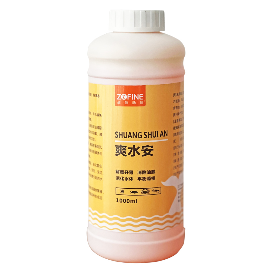 [用法用量]泼洒︰用水稀释100倍后全池均匀泼洒、每次用量为200~250ml/亩·米。育苗池:高位池高密度集约化工厂养殖及水质污染严重、可加大使用分量。