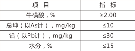 [原料组成]牛磺酸、胆汁酸﹔载体∶葡萄糖。